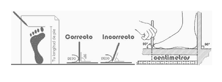 • Colocá el Talón contra la pared, como lo indican las imagenes, y medi el largo de tu pie desde la pared hasta la punta.