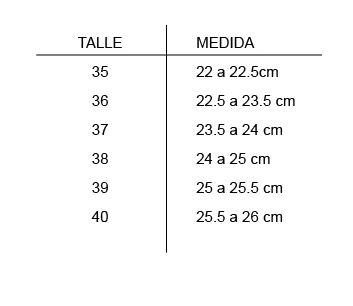 • Fijate en la tabla de talles, de acuerdo con los centimetros ( cm ) que mide tu pie, que número de calzado te corresponde.